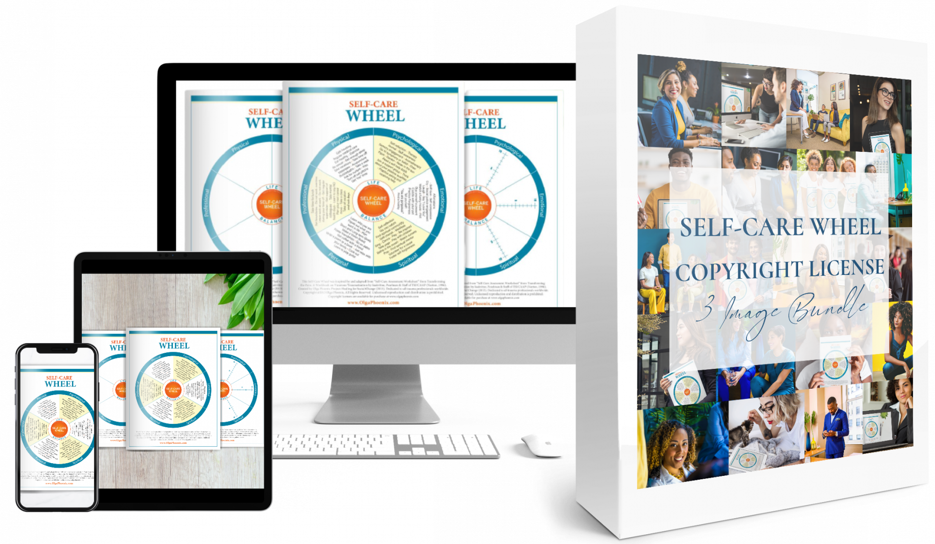 If you’d like to bring this dynamic Self-Care Wheel trio to your team, students, clients, your community-we invite you to join our Worldwide Self-Care Wheel Copyrights Tribe! With copyright purchase, you’ll gain access to the highest quality Self-Care Wheel images in jpg and pdf, and a copyright license to reproduce, print, and publish the images in your professional life for a 3-year term (for details please read full license agreement here). Please see available copyright options below or email us at copyrights@olgaphoenix.com with any questions. We are excited about having you onboard!